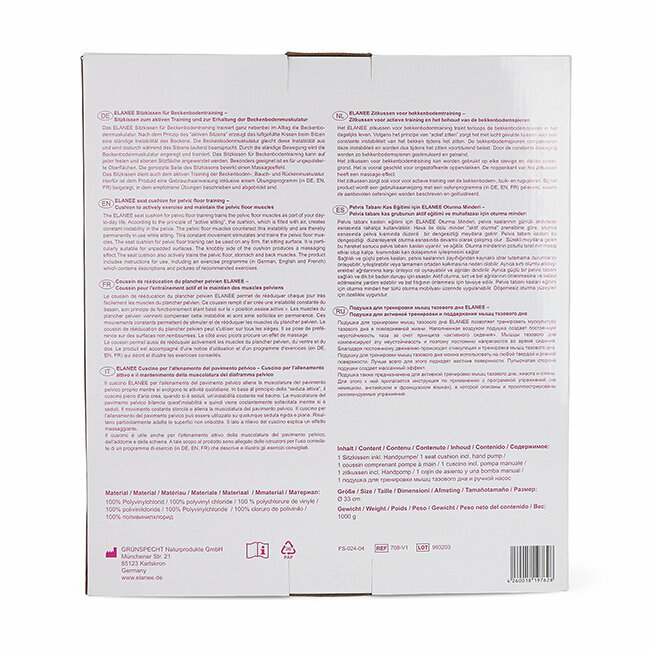 Avec le coussin d’exercice du plancher pelvien Elanee, vous pouvez travailler la musculature de votre périnée chaque jour très facilement. Le principe de fonctionnement de cet accessoire spécial est basé sur la « position assise active ». Le coussin d’exercice se pose sur n’importe quel siège, sur une surface non rembourrée de préférence.